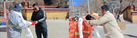 年輪流轉(zhuǎn),時光飛逝。告別成績斐然的2021年,迎來充滿希望的2022年,在這藏歷水虎年來臨的關(guān)鍵時刻,西藏圣凈環(huán)保服務(wù)有限公司展現(xiàn)新?lián)?dāng)、奮發(fā)新作為,積極發(fā)揚企業(yè)愛心文化精神。2月15日,總公司環(huán)衛(wèi)部經(jīng)理白瑪次珠、吉隆分公司經(jīng)理貢覺次達(dá)、吉隆環(huán)衛(wèi)項目部經(jīng)理旦增晉美等一行工作組在吉隆縣副縣長旦增羅白同志和縣住建局局長邊巴同志的陪同下,深入吉隆鎮(zhèn)開展了2021年度“送溫暖、送愛心、表彰先進(jìn)”活動。